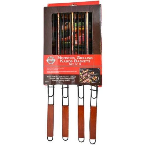 Measures: 19.5″ x 1.75″ x 1.5″ Basket size 11″ long Enjoy perfectly grilled kabobs without skewers with these sturdy wood handled grilling baskets. Nonstick baskets...